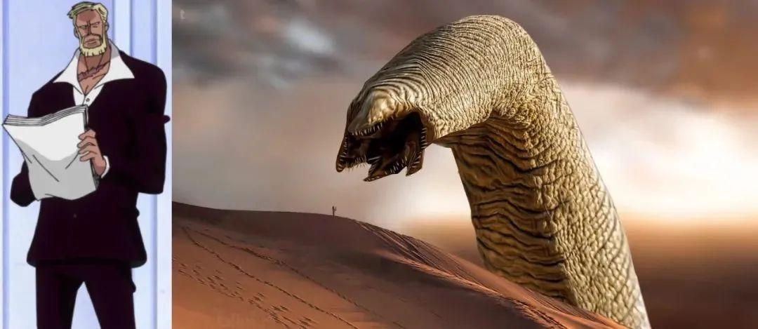3、巨人族東利和布洛基現身,幫助路飛斬斷了木星的沙蟲形態首級。
