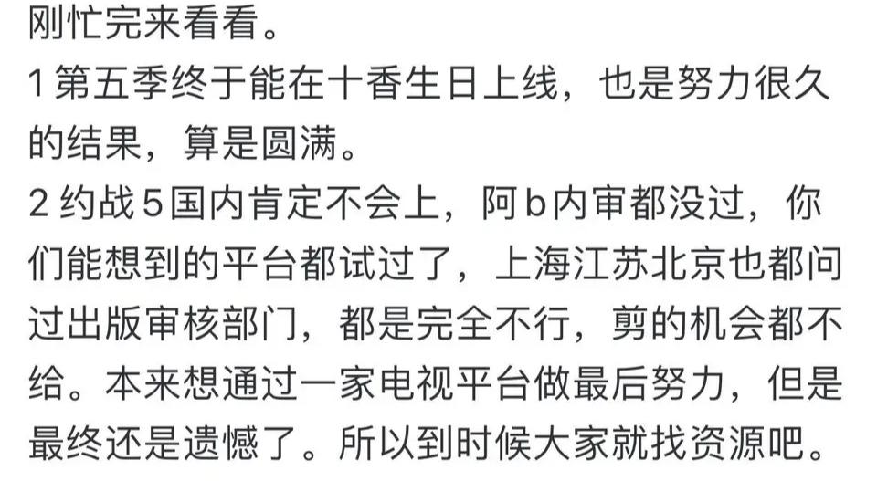 然而,第五季不同,疑似這一次的審覈部門以一種非常果斷的態度拒絕了這部作品,連國內加工刪減修改的機會都不給。