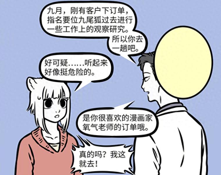 我們都知道非人公司的業務很廣泛,這次觀音大士派給九月一個特殊的訂單。因爲客戶指名要一位九尾狐過去,進行一些工作上的觀察和研究,所以這個訂單非九月莫屬。不過九月一聽,覺得這個訂單很危險,心中有點退縮,不過觀音大士說客戶是九月最喜歡的氧氣老師,九月立馬就換了一個態度,直呼馬上就去。