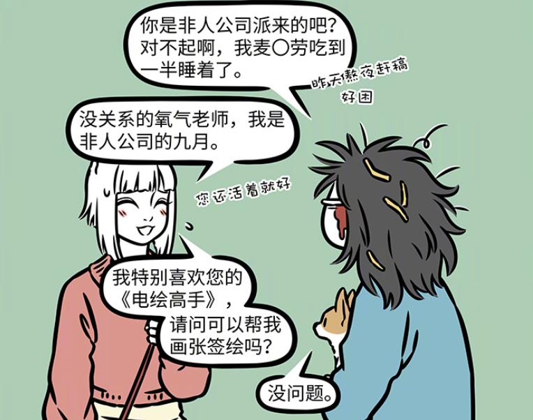 又到了非人哉漫畫更新的時間,青銅神獸的故事已經結束了,不過九月繼續帶來全新的故事,只是她這次不和烈烈搭檔進行工作,而是獨自接受觀音大士派來的新訂單。可是沒想到卻進入了最喜歡的偶像漫畫師氧氣老師的死亡現場,還目睹了對方復活,好在最後喜提了精美的籤繪,滿足了自己的小願望,下面就讓我們一起來深入看看吧。
