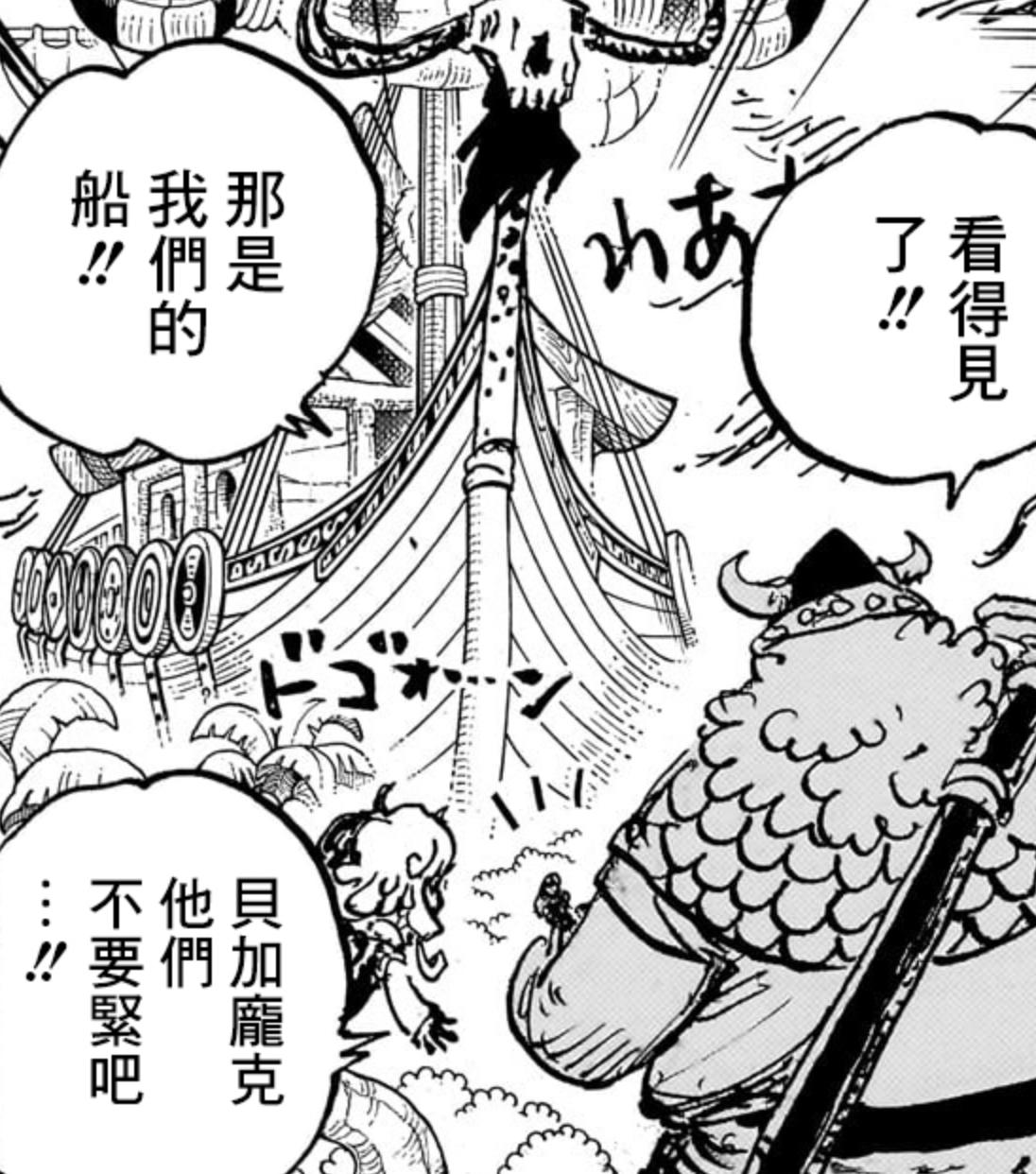 草帽一夥在逃離蛋頭島的過程中,得到了巨人海賊團的巨大戰艦的援助。羅布·路奇與索隆的戰鬥雖然結束,但路奇的命運仍撲朔迷離。爲了儘快離開這個危險的島嶼,草帽一夥在巨人的幫助下,順利逃離。而貝加龐克一行的安危,也成爲了接下來劇情的關鍵。