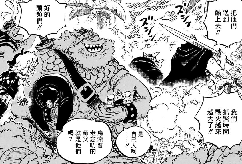 當時東利和布洛基就派手下的巨人,護送波妮弗蘭奇他們一行人,前往巨兵海賊團。但是從先行情報中能夠看到,波妮和弗蘭奇他們成功抵達了巨兵海賊團船隻的位置,正準備登船的時候,卻遭到了三大海軍中將的截殺。海軍中將龐斯基和斷頭臺以及雷德王,擋住了巨兵海賊團船隻入口,正等着波妮呢,看來又是一場惡戰。