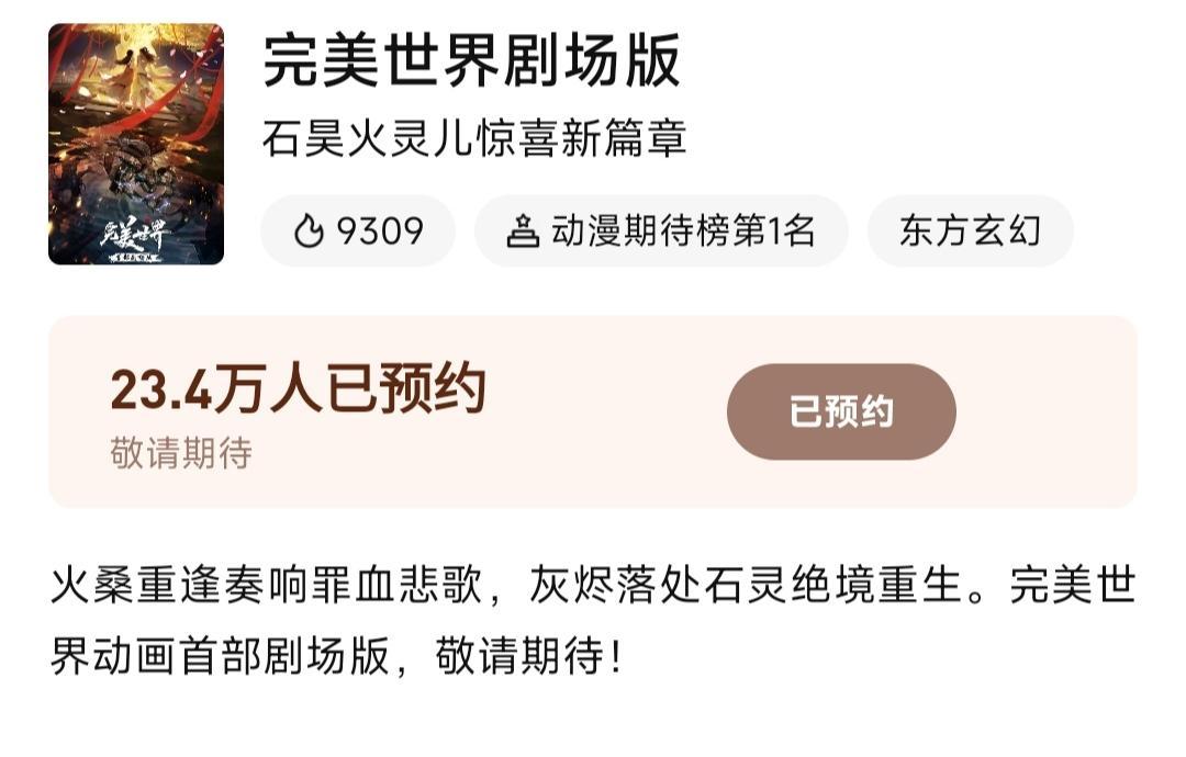 最後就是,這個《完美世界》劇場版有沒有上線院線的可能呢?雖然希望不大,但我個人還是希望能夠去影院體驗的。