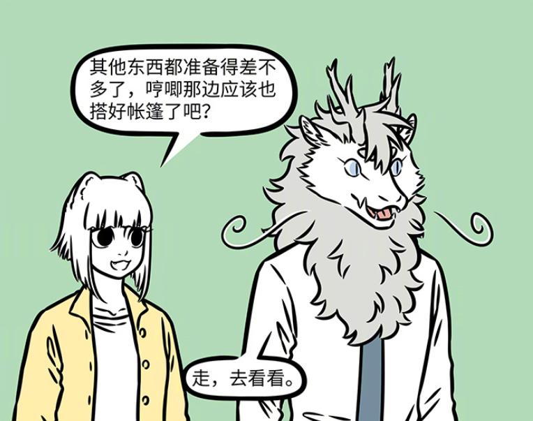 又到了非人哉漫畫更新的時間了,地藏菩薩與鎮墓獸以及三眼哥楊戩的故事已經結束了,如今陽光明媚的春天來了,九月與玉總一起約着去公園踏青,但是卻被哮天破壞了美好的心情。隨後九月與烈烈一起露營約會,徐哼唧太給力了,直接給自己爸媽搭建出大別墅,下面就讓我們一起來深入看看吧。