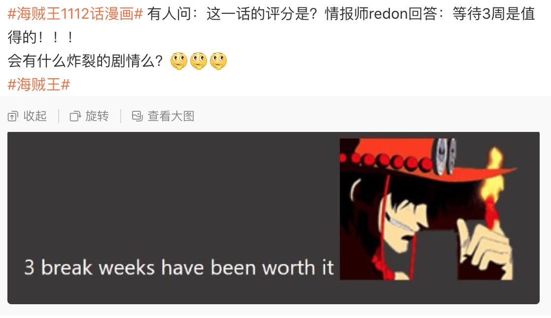 情報師爲我們預告了第1112話的精彩內容,配圖居然是艾斯!這一消息彷彿春風拂面,喚起了我們心中的那份激動。