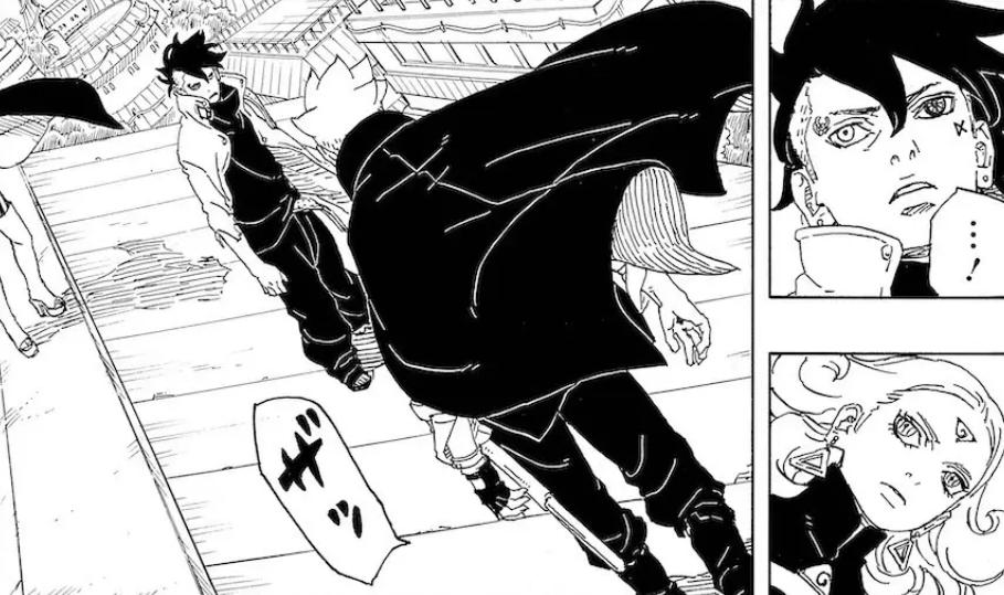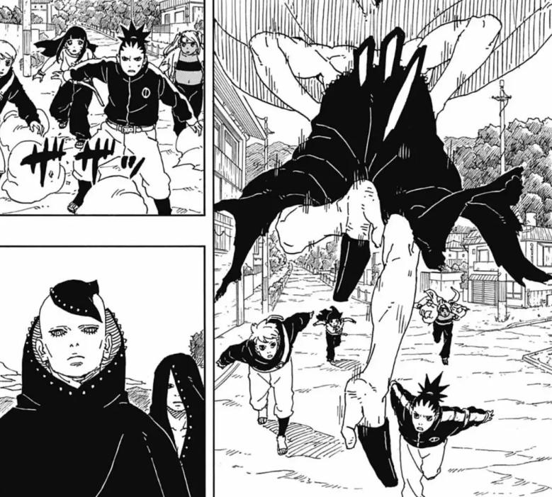 從官方曝光的圖透先行情報來看,一直行蹤不定的漩渦博人突然現身,來到了木葉忍者村的一處屋檐之上,率先找到了剛剛被神樹分裂體十羅與佐吊打的川木。兩個人這是繼考德入侵以後,第二次正式會面,站在屋檐上對峙。