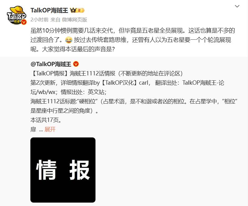 海賊王漫畫第1112話的情報已經全部更新了,信息量十分充足,有着不少的亮點。不但有路飛與水星以及木星的大戰,而且還有波妮與海軍中將的較量,而且貝加龐克的世界真相爆料僅剩一分鐘的時間了。除此之外,五老星也是抓緊了自己的行動,土星薩坦聖已經找到了娜美他們,準備獵殺之旅,而金星納斯壽郎聖開始襲殺波妮,同時斯圖西也有登場,她將給路飛一行人斷後,下面就讓我們一起來深入看看吧。