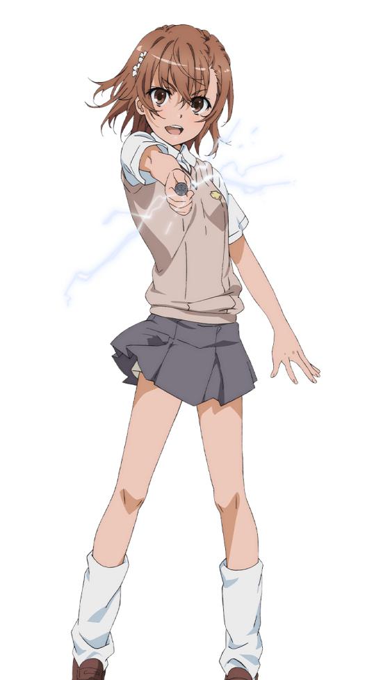 在動畫中,御坂美琴穿着學園制服,下身JK短裙打底褲,小腿上的堆堆襪,讓她整個人看起來更加精幹。