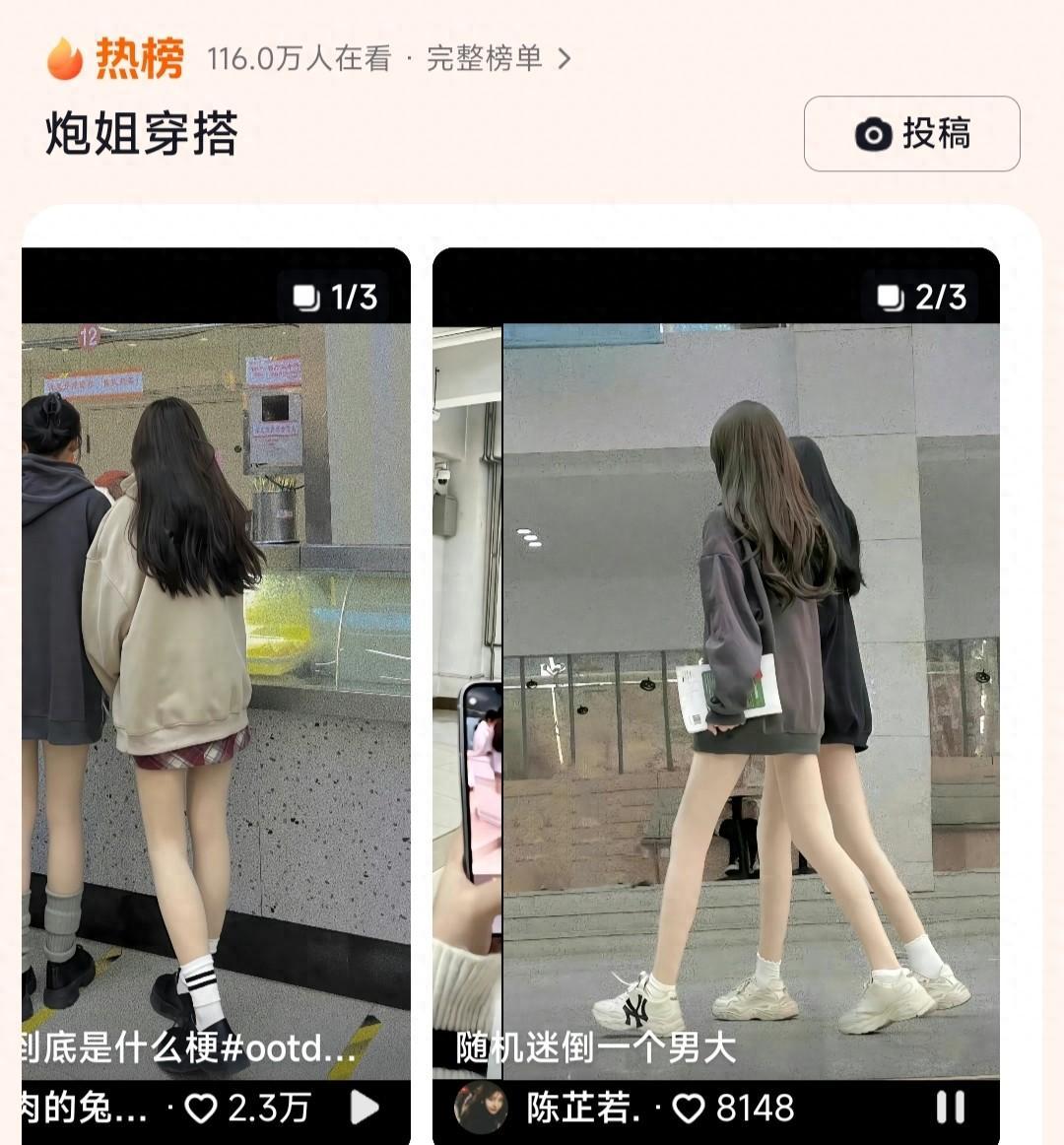 如果仔細看這類穿搭推薦視頻的標題,或者是話題的主題,都提到了一個詞彙,那就是“炮姐穿搭”。
