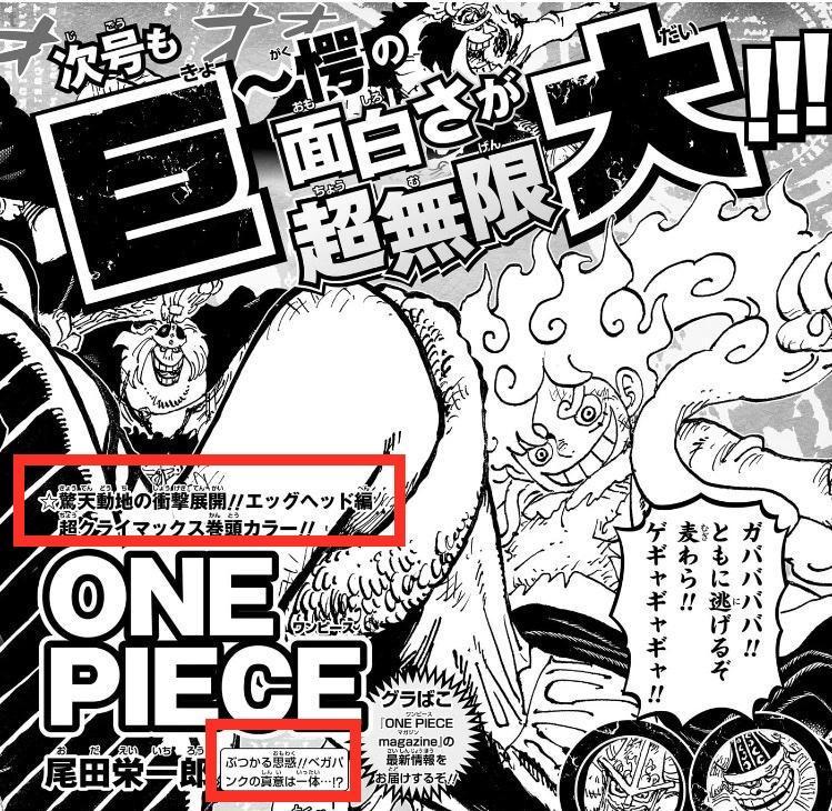 官方預告的文字爲:“震撼天地,事態急轉直下!!‘衝撞的決心!’貝加龐克究竟有何深意?!”