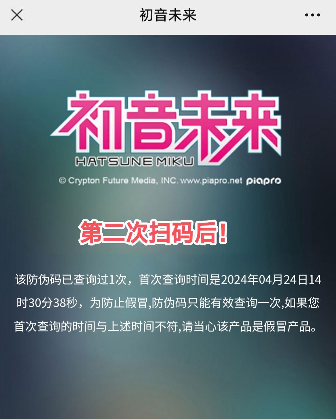 當然了,也不僅僅是初音未來的痛包這款產品,很多的其他國谷,像吧唧、卡牌之類的有些用的也是防僞碼。