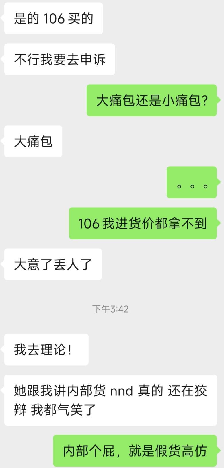 在得到我的回覆後,她去找賣家理論,而賣家給出的理由也非常好笑,說這是他們的內部貨。