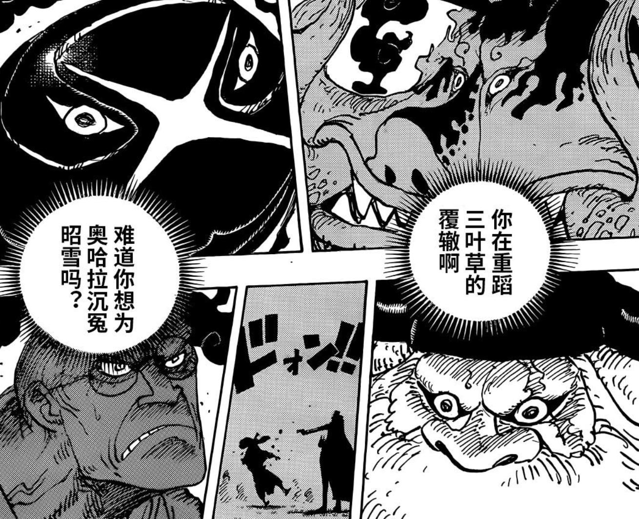 這正是五老星聽聞此消息後,立馬聯想到【貝加龐克是否欲爲奧哈拉翻案?你正步三葉草博士的後塵啊】的原因所在。畢竟當時的三葉草所作的猜想讓五老星感到膽寒,以致他們命令CP組織將其槍殺,因爲深知三葉草的推理無懈可擊。