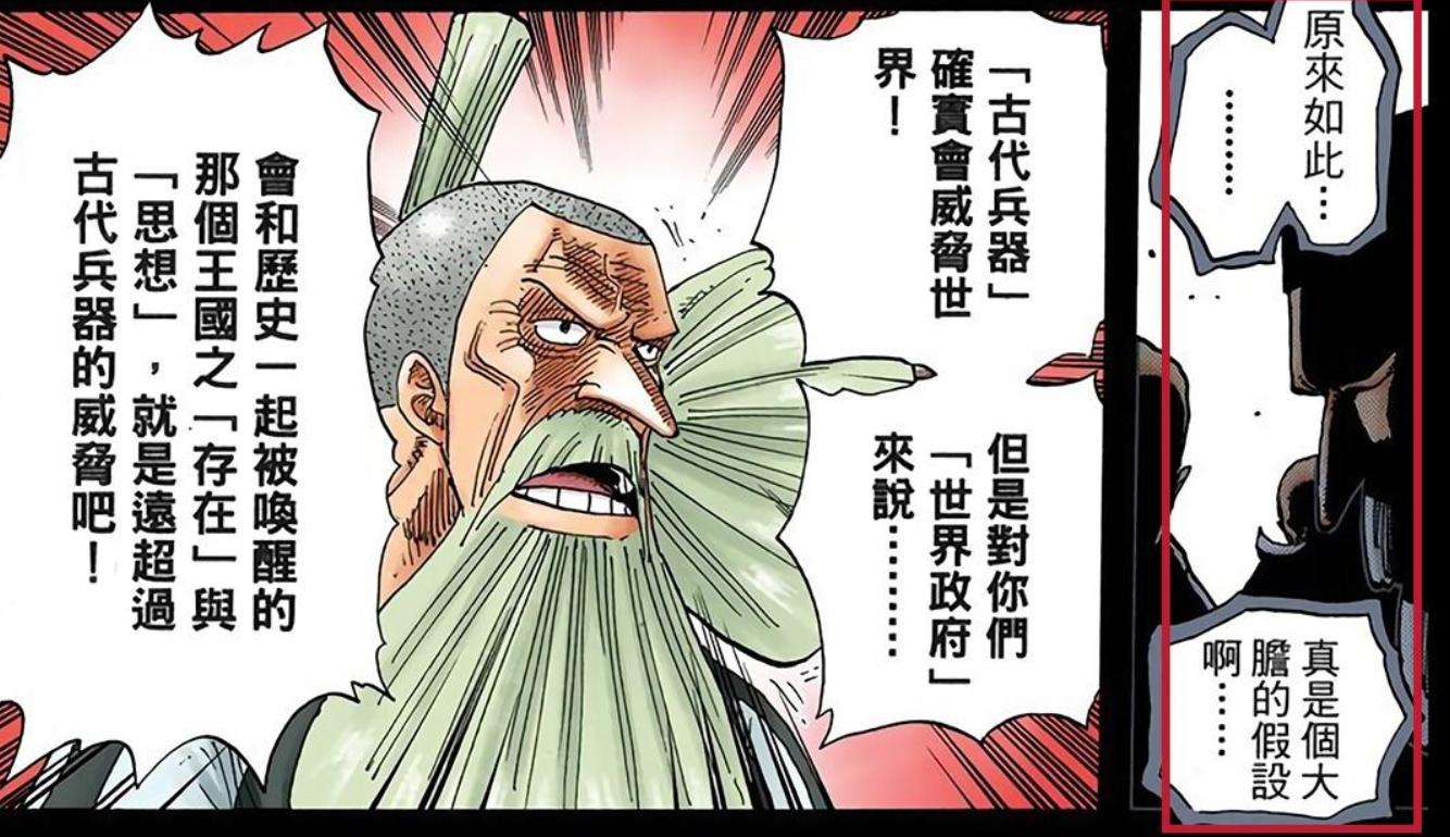 研究完所有文獻之後,貝加龐克所揭示的【真相】,無疑使他震驚不已,與當年三葉草博士的論斷不謀而合。那個未曾出口的偉大王國之謎,正是指向D之一族。