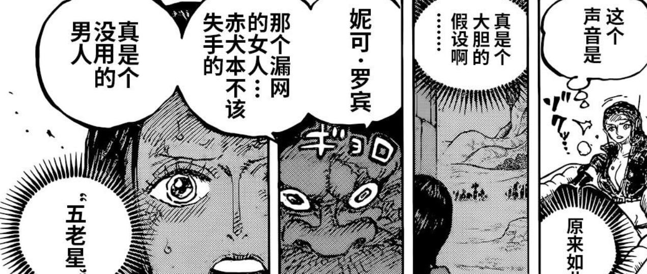 另一方面,草帽一夥也兌現了他們的承諾——拼死捍衛羅賓的安全!土星聖在研究層企圖誅殺羅賓,他的聲音讓身受重傷的羅賓回想起奧哈拉事件的恐怖場景,認出他就是五老星之一。