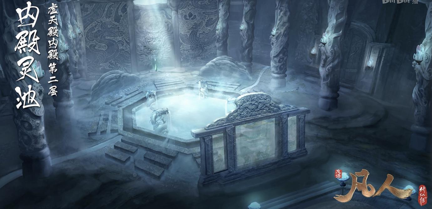 從情報中能夠看到,元瑤的洗澡池已經來襲了,也就是虛天殿內殿第二層的內殿靈池。在概念設計圖中,內殿靈池還是蠻震撼的,十根造型奇特的玉柱,牆壁上還刻有鳳凰和龍行,相當的有氣勢。中心就是靈池,以八卦爲造型,還搭配了龍首噴頭,雲瑤就在這裏面洗澡。只不過靈池旁邊多了一個屏風,看樣子這是故意防韓立的,也是爲了劇情過審吧。