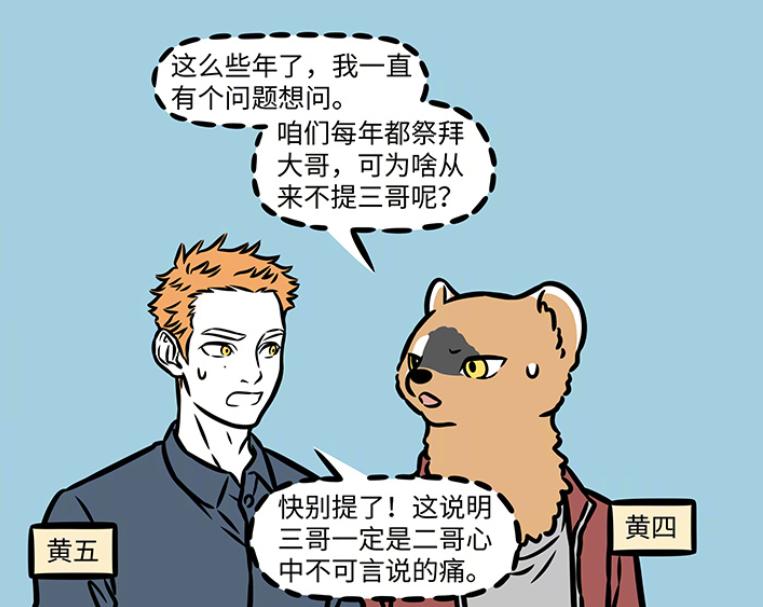 又到了非人哉漫畫更新的日子,刑天釣魚技藝高超的故事已經結束了,九月的師傅黃二閃亮迴歸,帶着自己的兩個同胞兄弟,前去給大哥掃墓。但是他們幾個兄弟中,根本就沒有黃三這個人,一切都是他們爸媽惹的禍,導致黃二的兄弟誤以爲黃三發生了什麼奇特的事情,下面就讓我們一起來深入看看吧。
