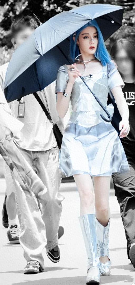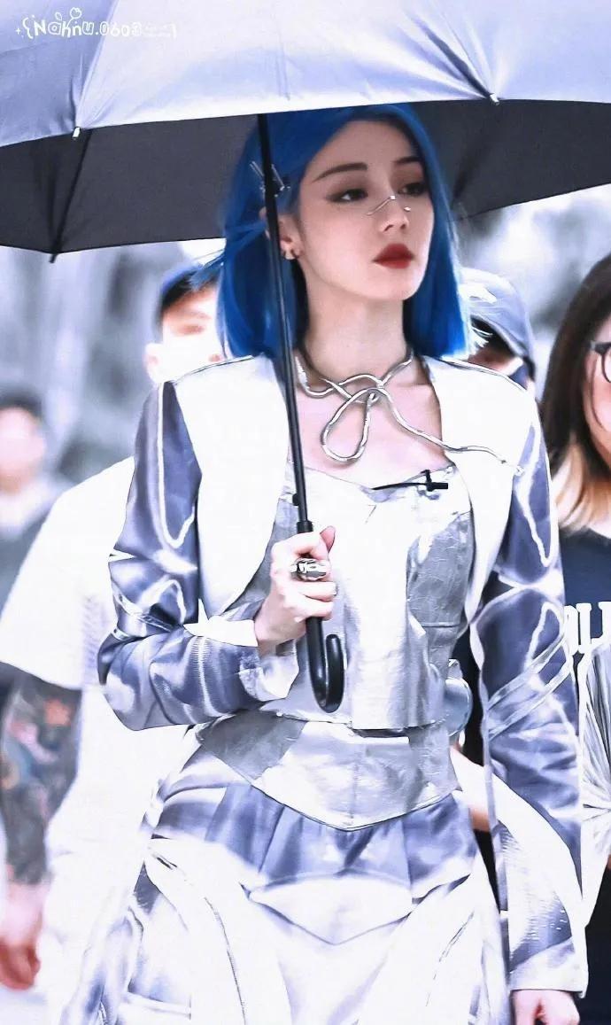 迪麗熱巴cos機械姬驚豔全場,長腿美不可擋,藍髮脣釘誘惑力十足