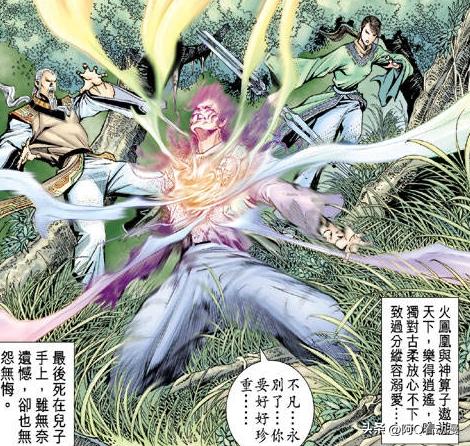 如果火鳳凰一直邊緣化也還好,起碼能保住性命,然而作者卻沒有放過她,擊敗天魔的十二年後,魔珠化爲魔紋再次攪亂世間,其中一枚進入了火鳳凰的兒子古柔的身體中,火鳳凰爲了阻止自己的兒子做壞事,被他親手毒害了,按照漫畫中的說法,火鳳凰這些年來一直覺得對不起自己的兒子,是她過於溺愛古柔,以至於他墮入魔道,漫畫中火鳳皇沒有進行任何反抗,自願死在了古柔的手上,而在死亡前,她還希望問天能放過古柔。
