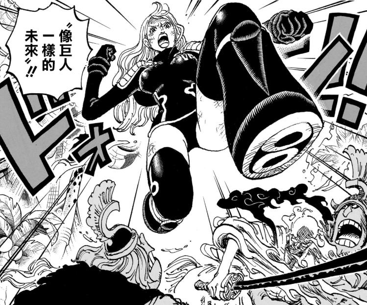 要知道五老星中的金星納斯壽郎聖,在處理了蛋頭島上所有新和平主義者之後,便直接找到了波妮,準備將其斬殺。只不過山治及時趕到,一腳踢膝,直接將金星納斯壽郎聖踢得口吐鮮血,緊接着波妮用惡魔果實能力,化身爲高大的巨人,一腳將金星納斯壽郎聖踩住,生死未明。