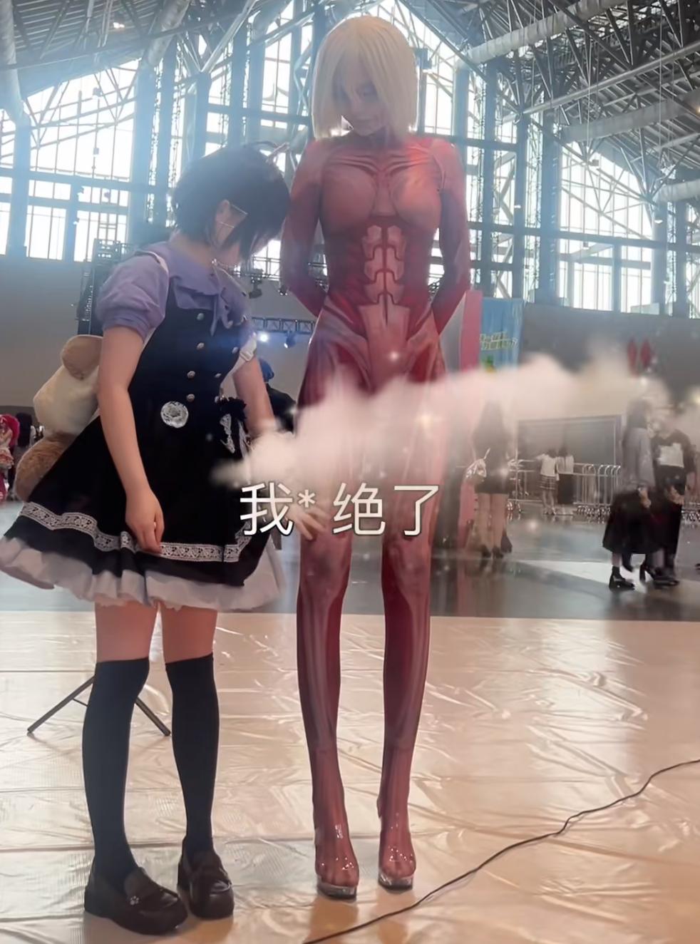 漫展出現女巨人cos!造型神還原,身材超火辣,大長腿比命還長