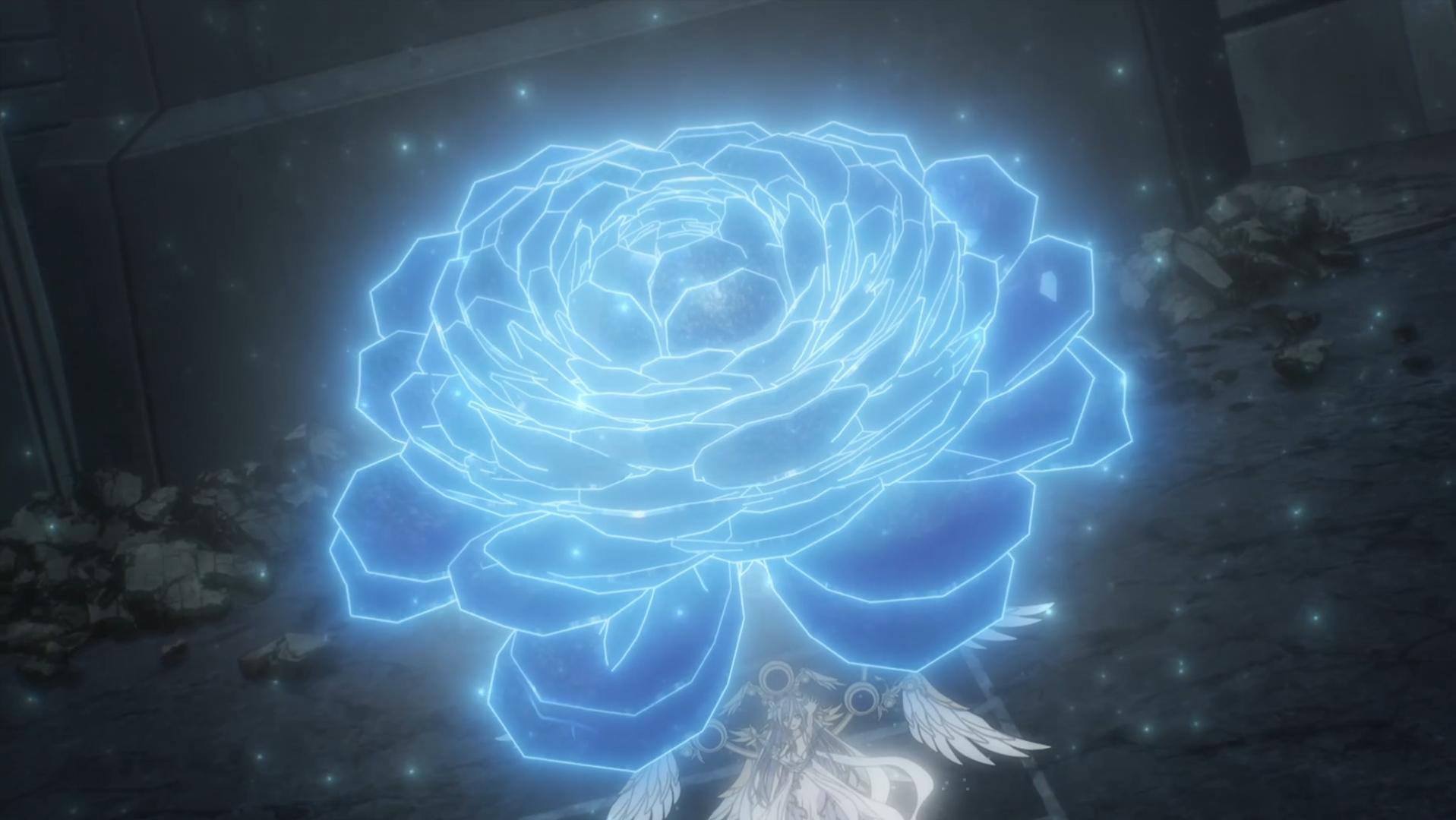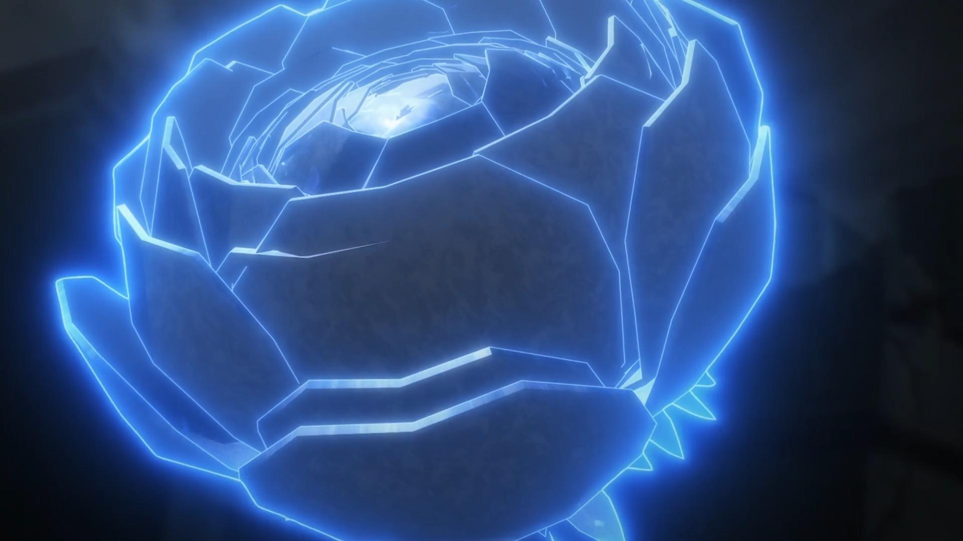 動畫裏表現的是一朵巨大的散發着藍色光芒的花朵。