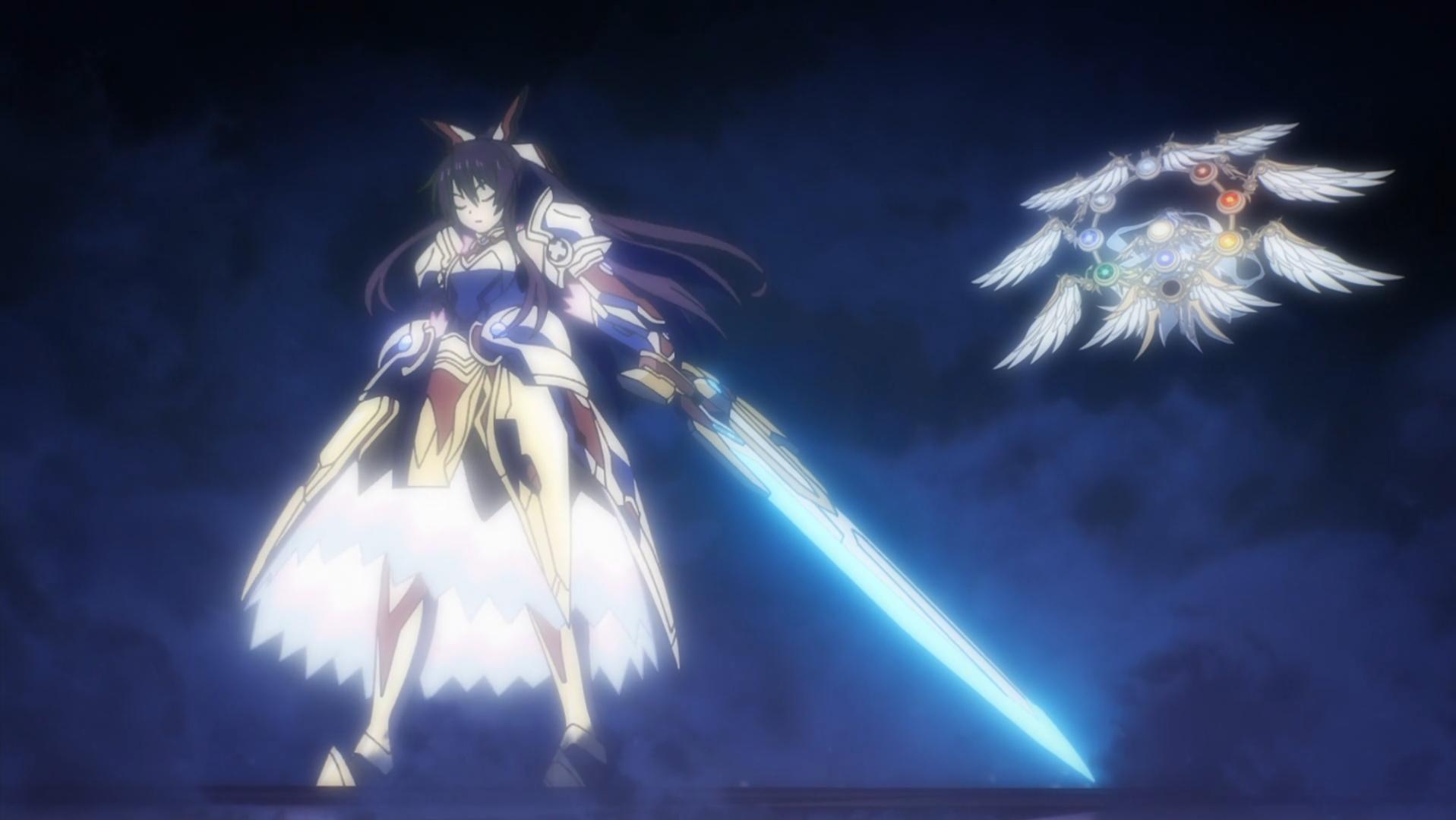動畫中,十香在面對澪媽釋放的蕾炮,還是將最後之劍的王座召喚出來,合成一副黃金色的鎧甲去對敵。