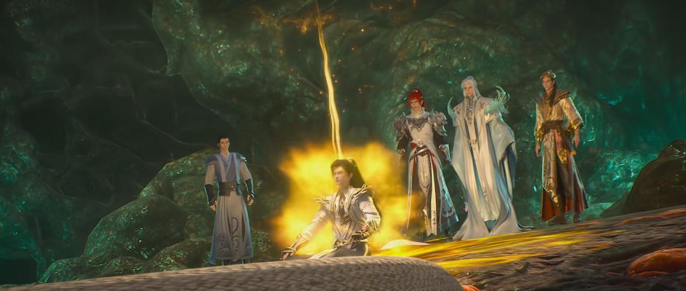 在原著中,石昊三兄弟是走到一條通道的分叉路口,他們才彼此分開。但是預告中應該官方進行了改編,石昊三兄弟在一處山脈上,石毅拍拍石昊的肩膀,然後就離開了。秦昊亦是如此,與石昊說了幾句,也是飛行離開。