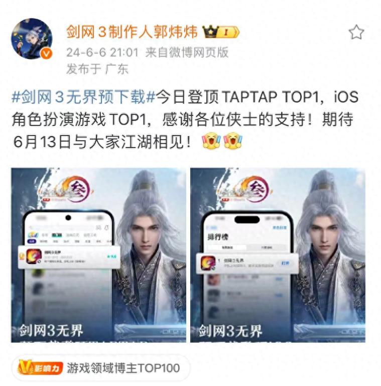 最終,在劍網3新老玩家們的共同努力下,劍網3無界毫無懸念的登頂TAPTAP和iOS角色扮演遊戲雙榜榜首,劍網3製作人郭煒煒第一時間發文感謝:感謝各位俠士的支持!大家也打心眼裏爲劍網3收穫好成績而開心!