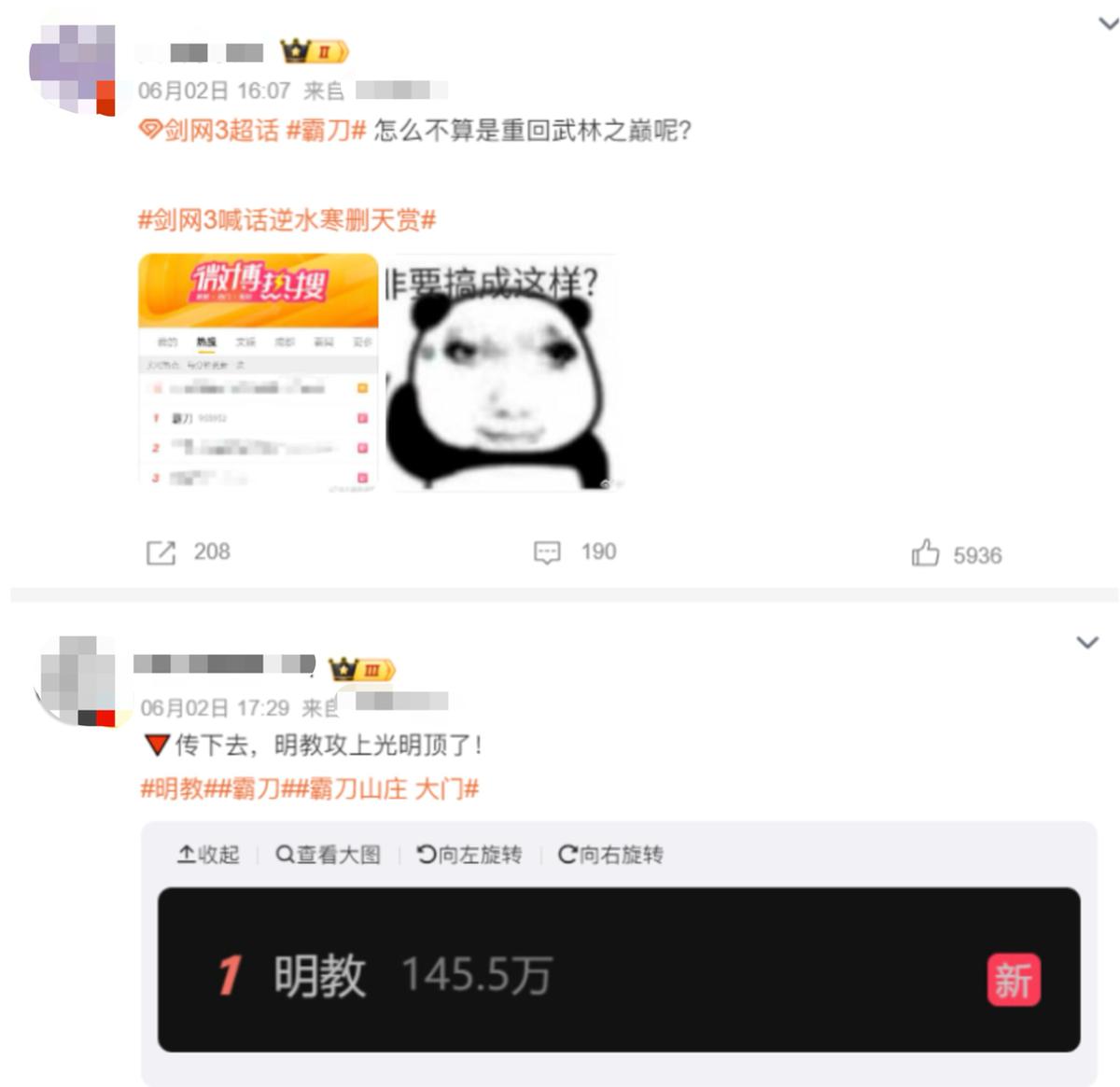 因爲劍網3玩家們另闢蹊徑,花式幫自家遊戲衝熱搜,霸刀山莊第一個突出重圍,#霸刀#直接登頂熱搜榜榜一。緊接着#明教#、#萬花#等門派詞條相繼上榜。