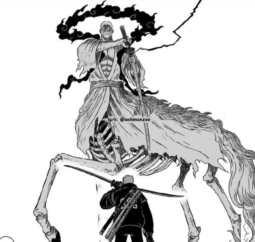 第三張謎語圖“拔刀”,不用多說,指得就是索隆了。第四張謎語圖“過肩摔”,自然就是甚平了,這可是他的招式。要知道索隆甚平打完路奇就一直在趕路,現在也差不多能夠抵達戰場了,自然是要與五老星交手大戰的。