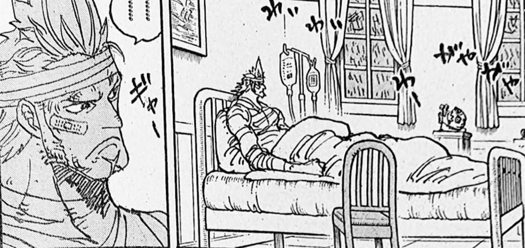 在海軍基地,克比等人的歸來並未伴隨着卡普的身影,似乎證實了他不幸的命運。然而,戰國和阿鶴中將來到基地慰問年輕一代,甚至斯摩格也及時趕回。值得一提的是,德雷克也從和之國逃脫,雖未提及卡普,卻也安然躺在牀上接受治療。