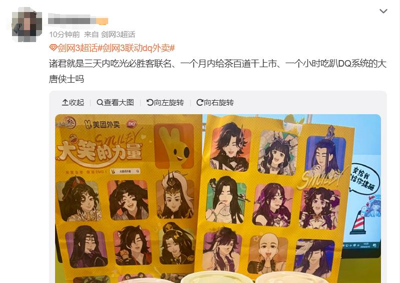 DQ不是被劍網3玩家熱情擊倒的第一個“受害者”,也不會是最後一個。畢竟大唐俠士們三天內喫光必勝客聯名,一個月內給茶百道幹上市,一小時喫趴DQ系統,主打一個能喫盡喫,絕不放過。