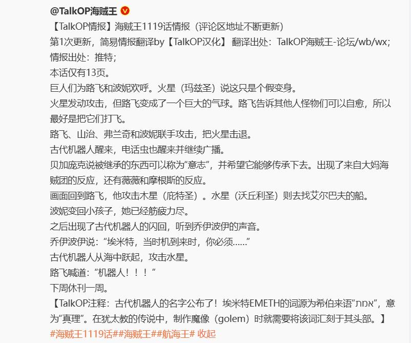 以上就是本期的全部內容,各位看官,您們覺得古代機器人能不能打過水星嗎?歡迎在評論處留言,與大家一起討論。如果您也喜歡海賊王漫畫的話,還請一鍵三連,多多支持,謝謝,我們下期再見。