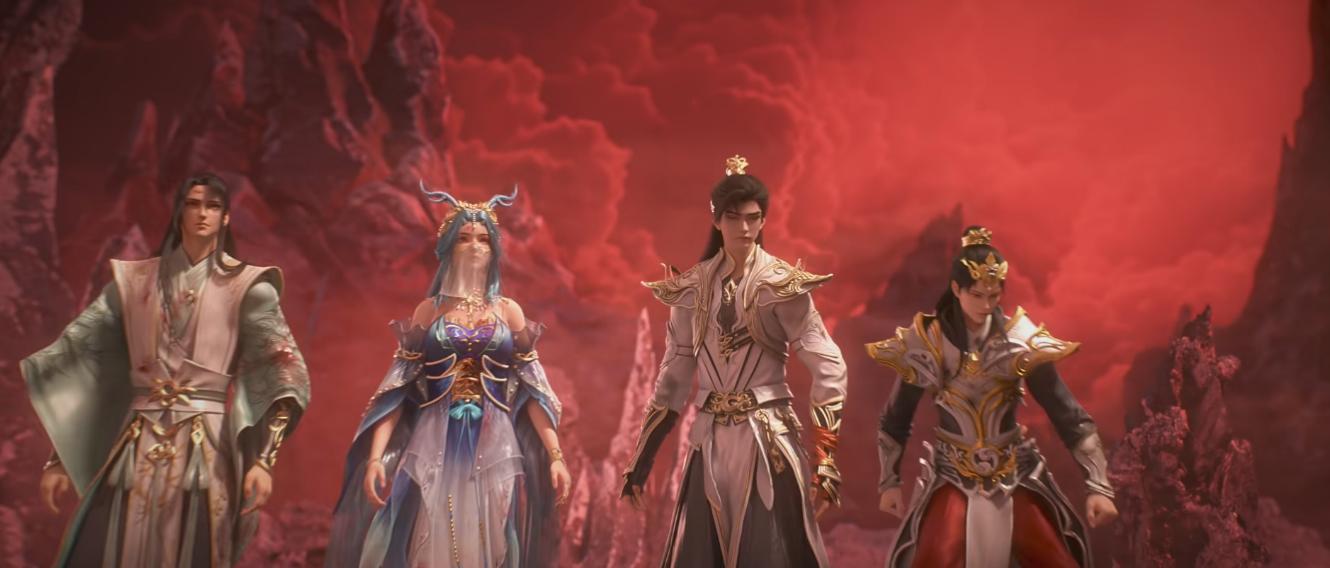 在仙洞搶寶的時候,石昊就發現了不同尋常,認定這是一場引人入坑的騙局,於是石昊和龍女一路狂奔逃跑,順道在半路上還救下了石毅秦昊和長弓衍,五人組隊總算是逃離了兇巢。不過他們也看到了背後佈局之人,也就是身穿白色長袍,手持長笛的帥哥謫仙。