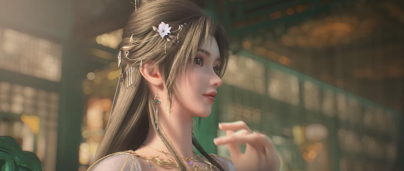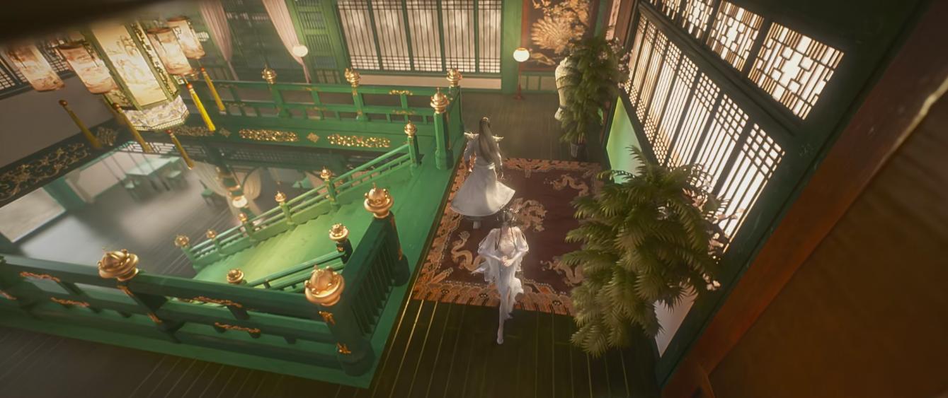 從先行預告中能夠看到,石昊與清漪在桃園相見了。看得出來,動畫官方終於發力了,桃園的場景建模還是蠻不錯的,不再是貼圖那樣廉價了,就連桃園的酒樓內部場景,也很好看。而石昊進入酒樓之後,在樓梯的轉角處,看到了漂亮的清漪。清漪雖然在仙古第一次亮相,沒有換新的服裝,但是渲染的她的模樣更加仙氣飄飄了,撩頭髮的動作,更是讓人心動不已。