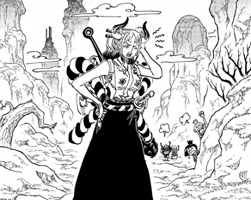 其實這是扉頁的故事,不過與蛋頭島篇是同時發生的。大和雖然沒有跟着草帽海賊團出海,但是她準備重走光月御田的道路,先從遊遍整個和之國開始。大和在花之都準備了很長時間,不但接受到了錦衛門的委託,也拿着鶴女士的飯糰,直接上路了。