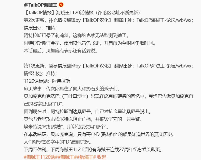 海賊王漫畫第1120話情報終於來襲了,下週不休刊,簡直是太爽了。雖然目前信息量比較少,但都很勁爆。傳次郎要幫大和出氣,阿特拉斯拉着五老星自爆,讓桑尼號終於下海逃走了。同時遠古機器人將解鎖新形態,下面就讓我們一起來深入看看吧。