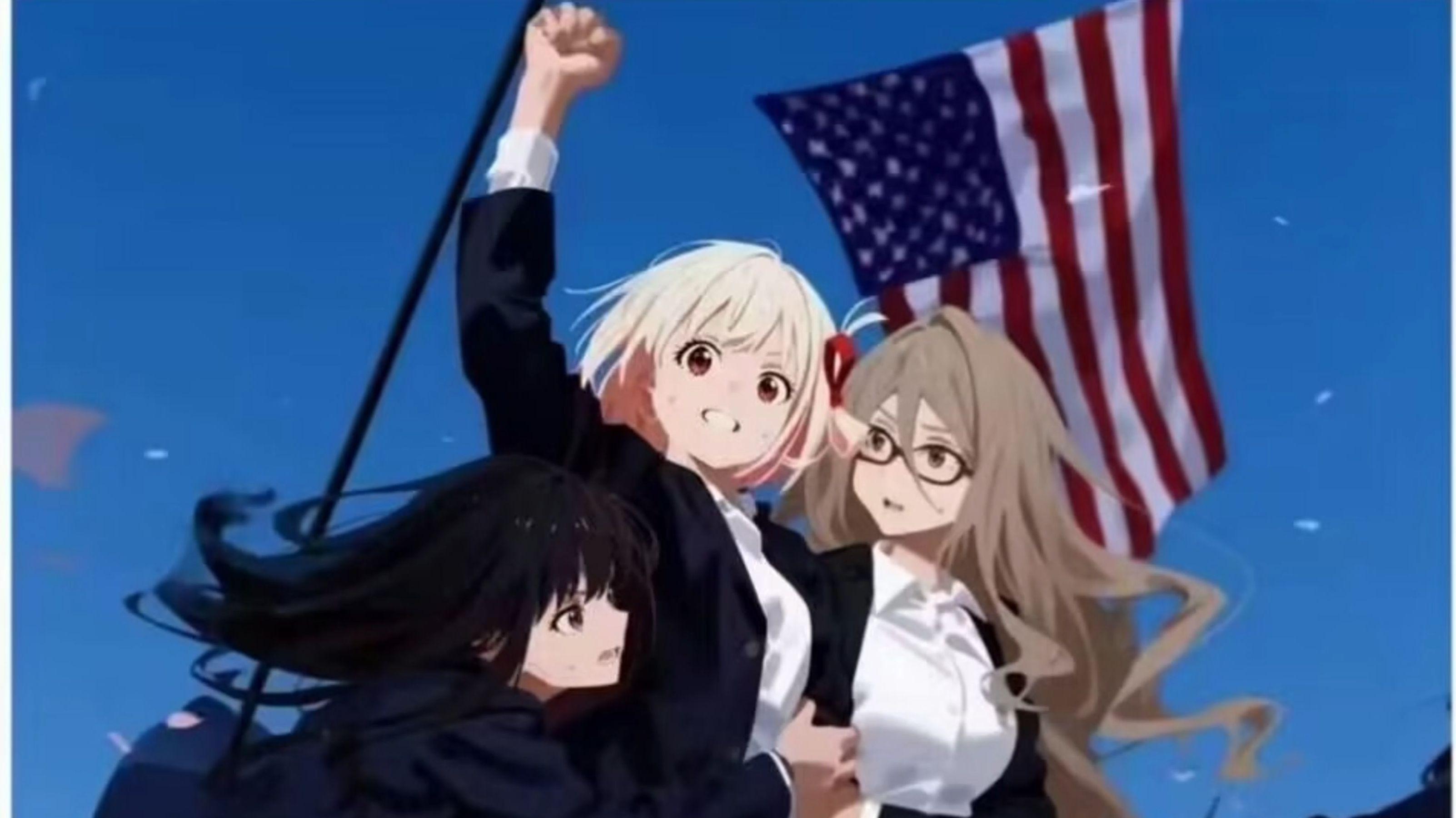 22年的輕百合動畫莉可麗絲,當川普世界名畫被二次元人物替換,錦木千束成了最大的亮點。
