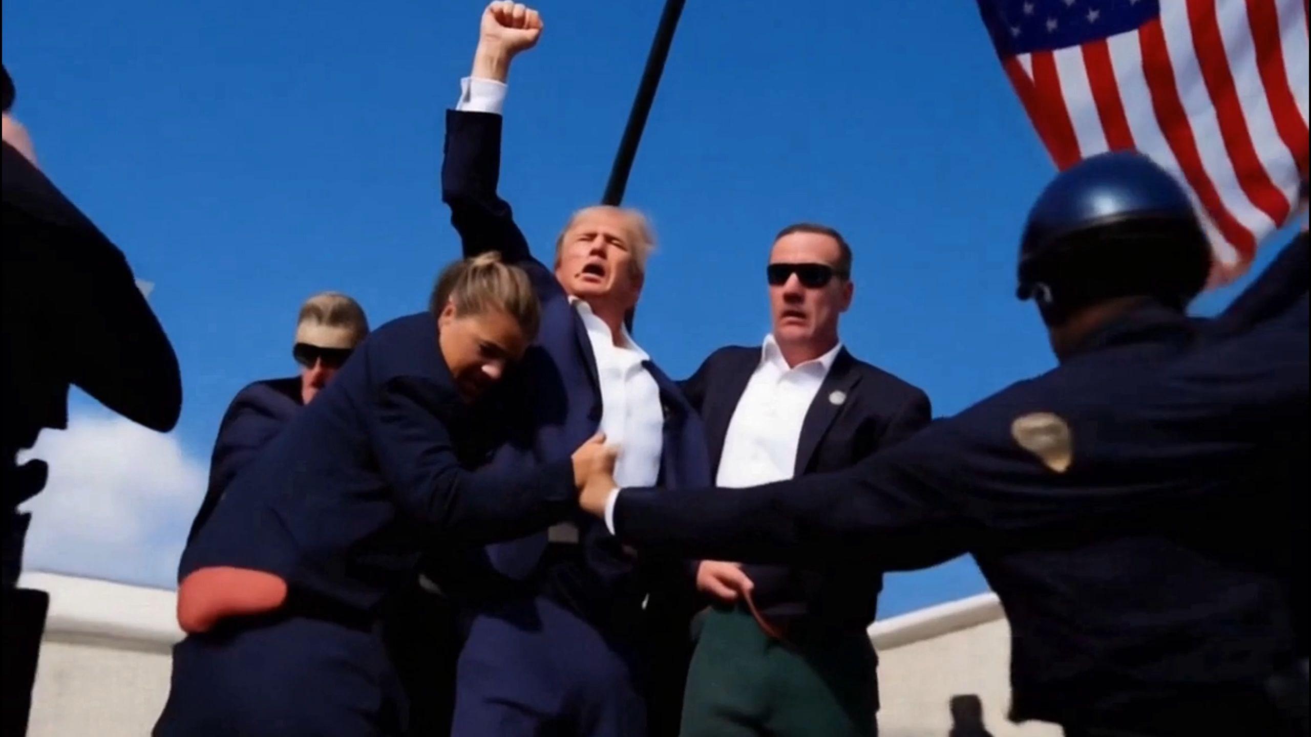 而這一幕,正巧被現場記者拍下,於是川普的世界名畫就此誕生。