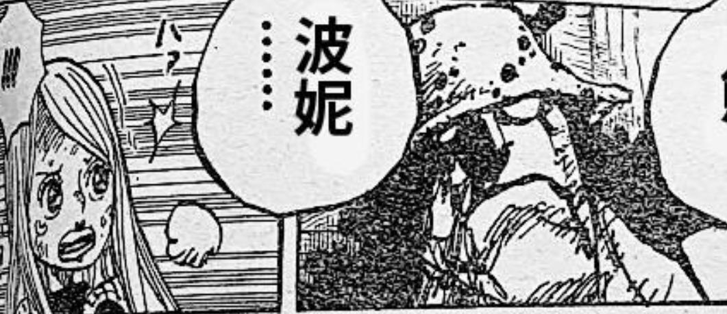 情報師發佈了第三個謎語圖,是一個男人被一個女人揍飛。雖然謎語圖中的女人打人動作,有點類似娜美打山治,但是感覺不太可能,畢竟山治在艾爾巴夫船,娜美在桑尼號,就算兩人相見了,也不會在如此危險的局勢中,發生內訌吧。反倒是波妮暴打土星薩坦,可能性更大些。