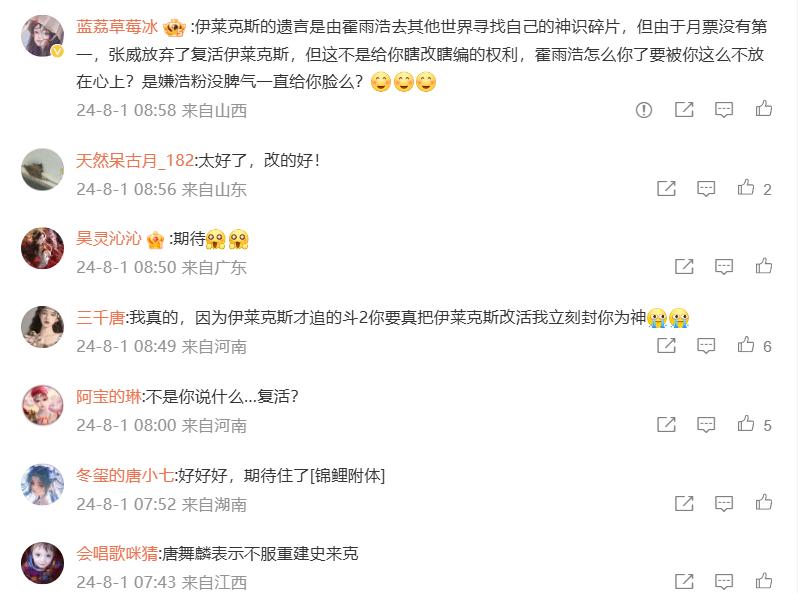 只是伊萊克斯被唐三複活,這應該是一件好事,但是卻在粉絲羣體中炸開了鍋。目前主要是分爲三個聲音,一個是部分粉絲覺得很好,圓了一個夢,讓伊萊克斯復活了。一個是霍雨浩唯粉,覺得唐三搶了他的風頭,要復活也應該是霍雨浩復活,畢竟他們師徒情深。另一個則是唐三唯粉,覺得不要隨便碰瓷,鬥羅一就是鬥羅一,不要和第二部有牽扯。