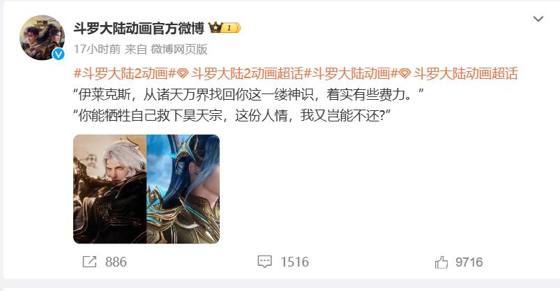或許是這個遺憾存在了多年,斗羅大陸動畫也想彌補,於是直接在官微上正式官宣,伊萊克斯並不會真正的死亡。既然霍雨浩做不到復活自己的老師,那麼神王唐三便出手,霸氣復活伊萊克斯。畢竟唐三是神王,有能力穿梭位面空間,尋找伊萊克斯的神識碎片,再加上他曾復活過大明二明,對於復活也是手到擒來,自然也能救活伊萊克斯了。