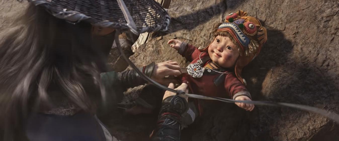 從先導預告中能夠看到,有一個嬰兒,躺在一個枯井的石塊上,頭上戴着老虎帽,還佩戴着長命鎖,一看就是身份高貴之人,只不過長途跋涉,疲於奔命,導致衣服有點破爛,而且臉上身上有點髒兮兮的。