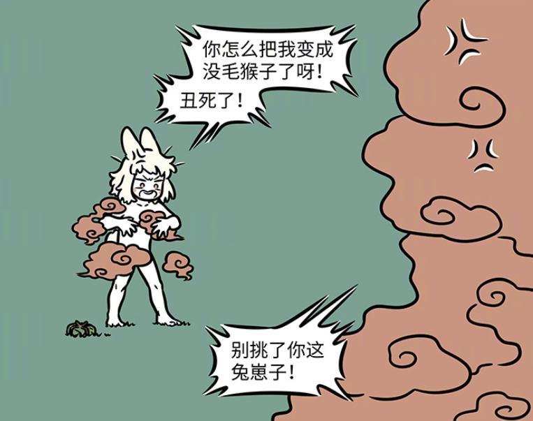只不過小玉化爲人形,並不是真正的人類模樣,而是半人半獸的形態。因爲只有手腳和身體以及五官是人類的樣子,毛髮和耳朵以及尾巴,依舊是兔子的模樣。小玉覺得自己的這個樣子,像沒毛的猴子,向西王母直呼醜死了,但是西王母怒氣說道,讓她別挑剔了。但說真的,小玉的這個樣子,還是蠻可愛的。
