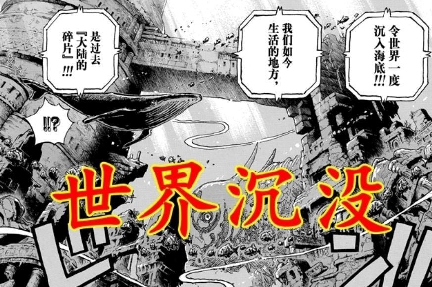 在貝加龐克的廣播中,我們可以得知,未來世界會沉沒。因爲喬伊波伊與世界政府的戰鬥,尚未結束,草帽團將重新打響,到時候其他的四皇海賊團,以及其他強大的勢力,都會參戰,少不了古代武器登場。不論最後誰輸誰贏,世界海平面都會上升,到時候便會淹沒大部分的陸地。