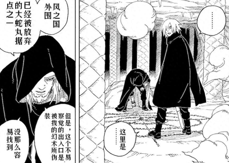 原本的木葉三忍,自來也已經死亡了,綱手退居幕後,大蛇丸也處於半隱居的狀態。不過在博人傳漫畫中,果心居士完全就是自來也的翻版,而大蛇丸更是打造出了人造人巳月,如今果心居士和漩渦博人見面的地方,仔細看到就能知曉,這完全就是大蛇丸的基地。