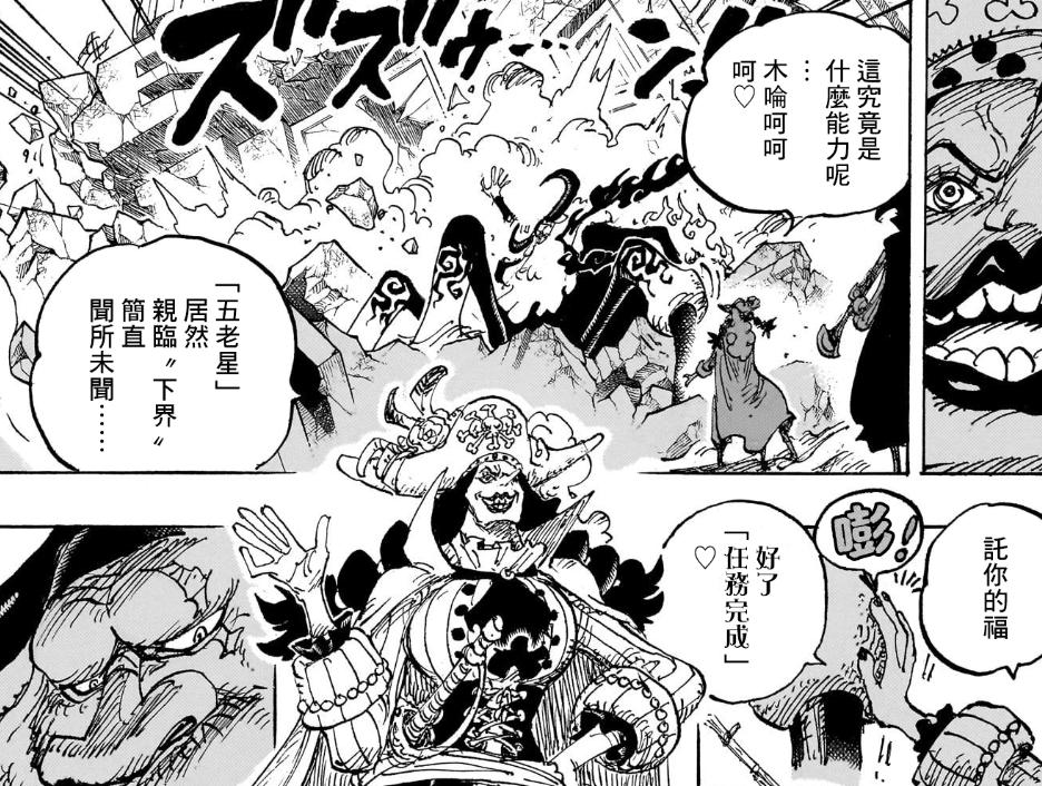 從畫面中可以看到基德的傷勢恢復得很不錯,而且這一部分的巨人族已經跟基德達成好合作意向,向【大祕寶】發起挑戰。但不知道基德這一次會選擇的對手是誰呢?依舊是四皇紅髮香克斯嗎?可別又一次慘敗啊!