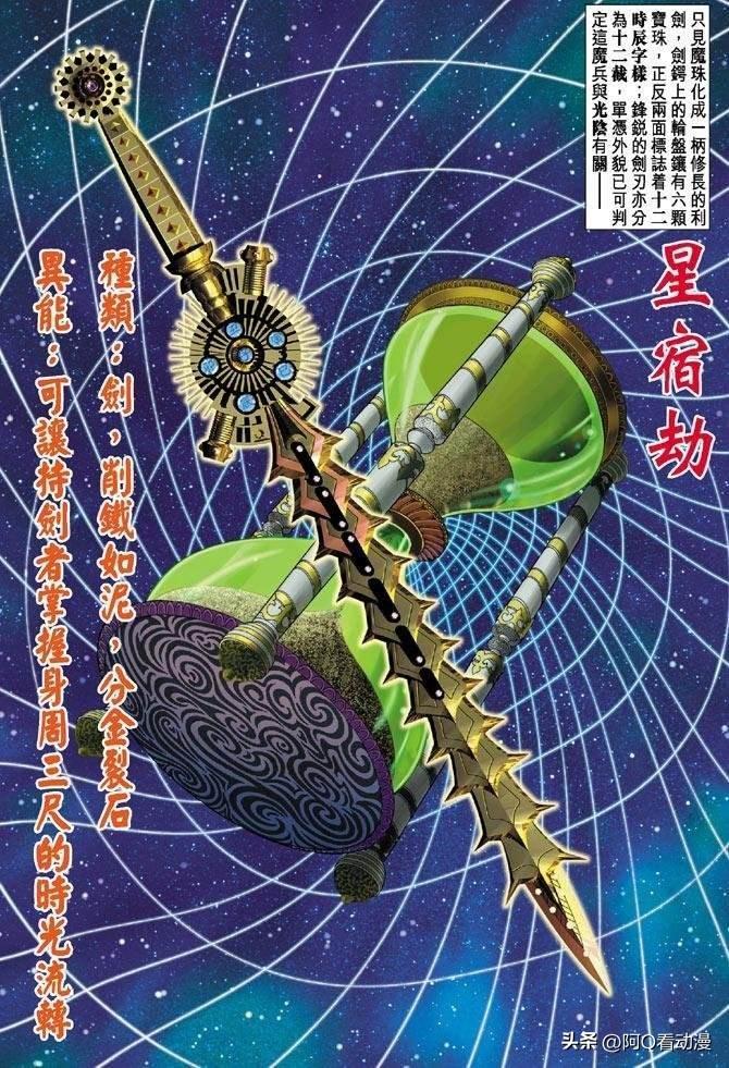 十大魔兵中的第三位是星宿劫,這件兵器誕生於焦慮的負面情緒,與時鐘,齒輪等元素緊密相連,擁有放慢周身三尺時間的強大異能,不管是物理功力,還是精神攻擊,進入星宿劫的範圍後,都會被放慢速度,如果運用得當,星宿劫足以讓人站在不敗之地。