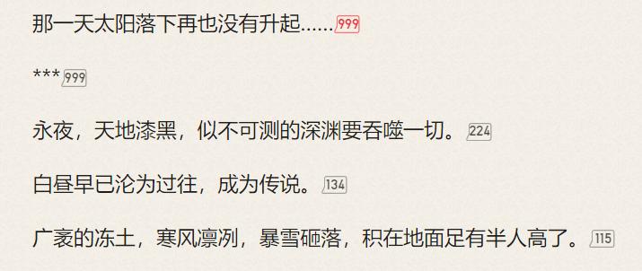 劇情目前還是處在一個預設謎團的階段,正如小說的簡介一樣,只有一句話“那一天,太陽落下,再也沒有升起……”